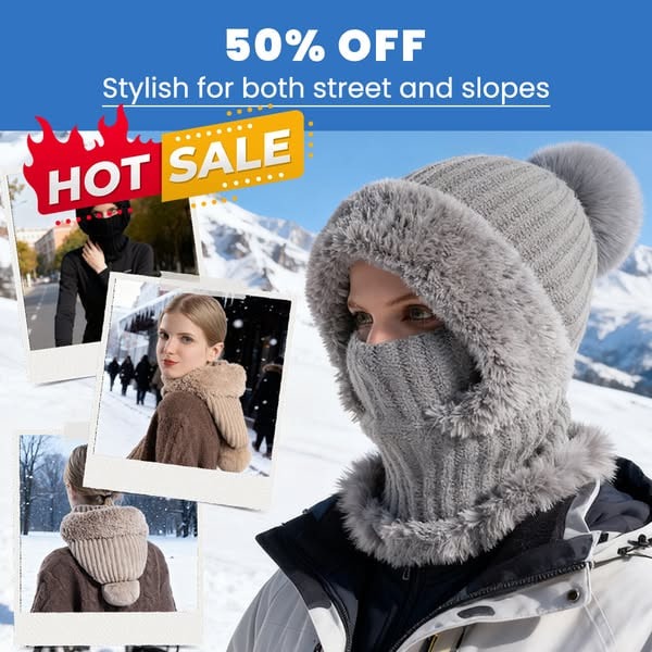 🎄Christmas Sale 50% OFF⛄️Women’s Thermal Knit Hood – Fleece-Lined Winter Hat, Neck Warmer & Face Cover Combo